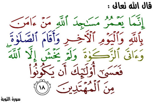 The mosques of Allah shall be visited and maintained by such as believe in Allah and the Last Day, establish regular prayers, and practice regular charity, and fear none (at all) except Allah. It is they who are expected to be on true guidance Surah Al-Tawba